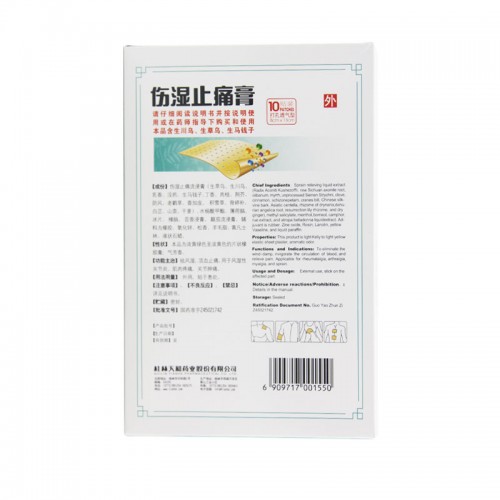 Plaster antirheumatic Shangshi Zhitong Gao / Tianhe Shangshi Zhitong used for sprains and dislocations, strong antirheumatic action, used in swollen joints.