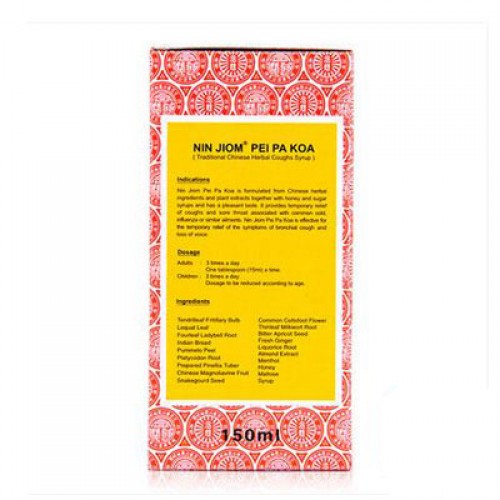 Cough syrup "Ninja Reypakoa" (NIN JIOM PEI PA KOA) has an effective mucolytic action (liquefies phlegm), shortness of breath and coughing cleans, protects the throat, has anti-inflammatory, regulates the heart, removes the heat.