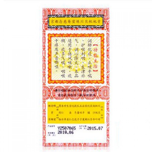 Ingredients: onion fritillarii Sichuan (chuanbeymu), medlar leaves (PIBA), nanshashen (Radix Adenophora), Mushroom Fuling, huatszyuyhun (pericarpium citri grandis), shirokokolokolchik macranthon (Platycodon grandiflorus) fabansya (Rhizoma Pinelliae), lemongrass (vuveytszi), wild pumpkin (gualyuytszy) bud mother and stepmother (kuandunhua), the root of fine-leaved istoda (yuanchzhi), bitter almonds (kusinzhen), ginger (shentszyan), licorice (gantsao), almond water (sinzhenshuy), menthol essence (bohenao); auxiliary elements: honey, maltose, sugar syrup.