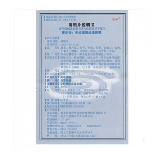 Tablets "Xiao Yin Pian" (Xiao yin Pian) for the treatment of psoriasis